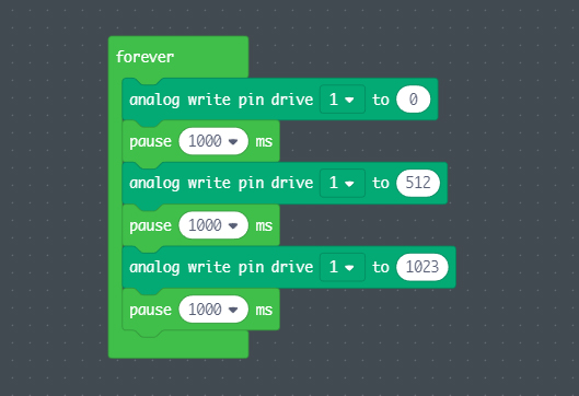 • The Crickit can set the pulse width to any value, but in general, you'll want to stick to 500 ms to 2500 ms wide pulses. This is customized in the Arduino, CircuitPython, or MakeCode software.