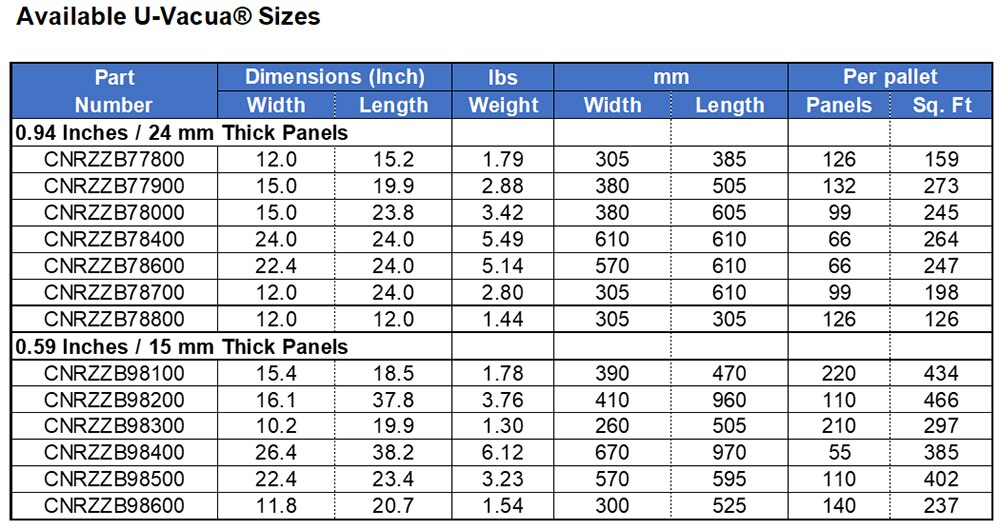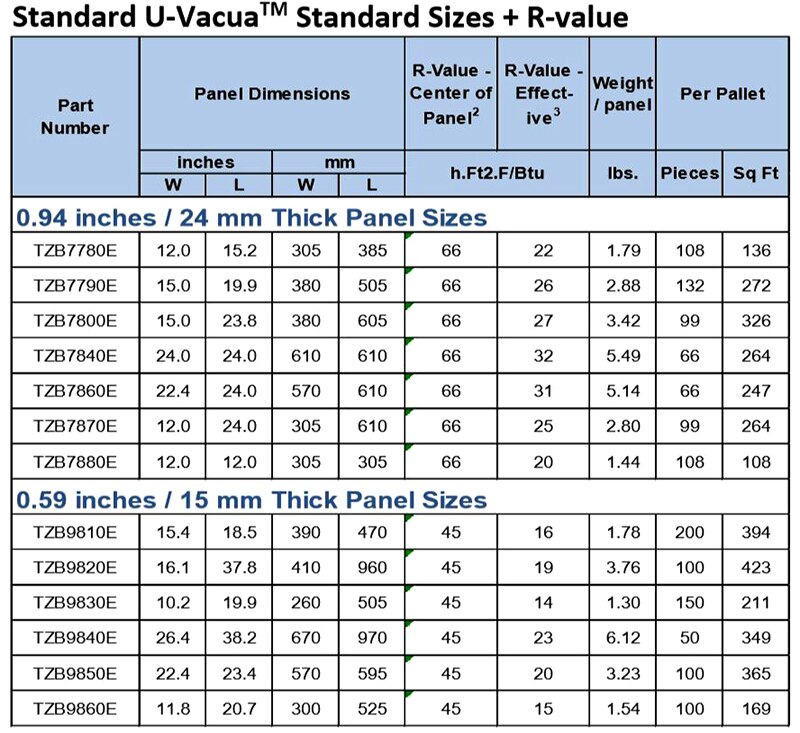 U-Vacua™ Series Vacuum Insulation Panels (VIPs)