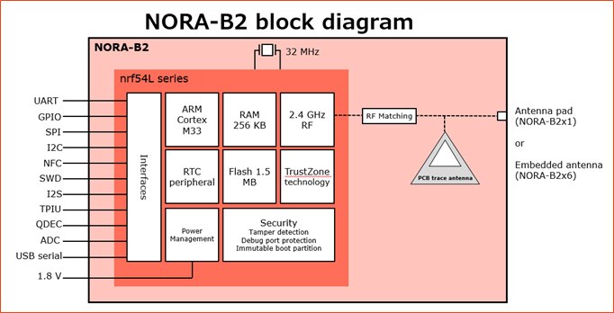 - NORA-B226-00B: nRF54L05 (open CPU) and internal PCB antenna