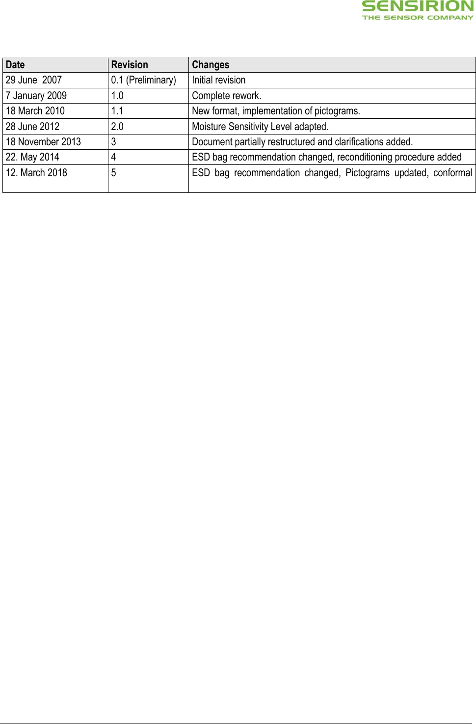 www.sensirion.com  Rev. 5 – March 2018  1/7