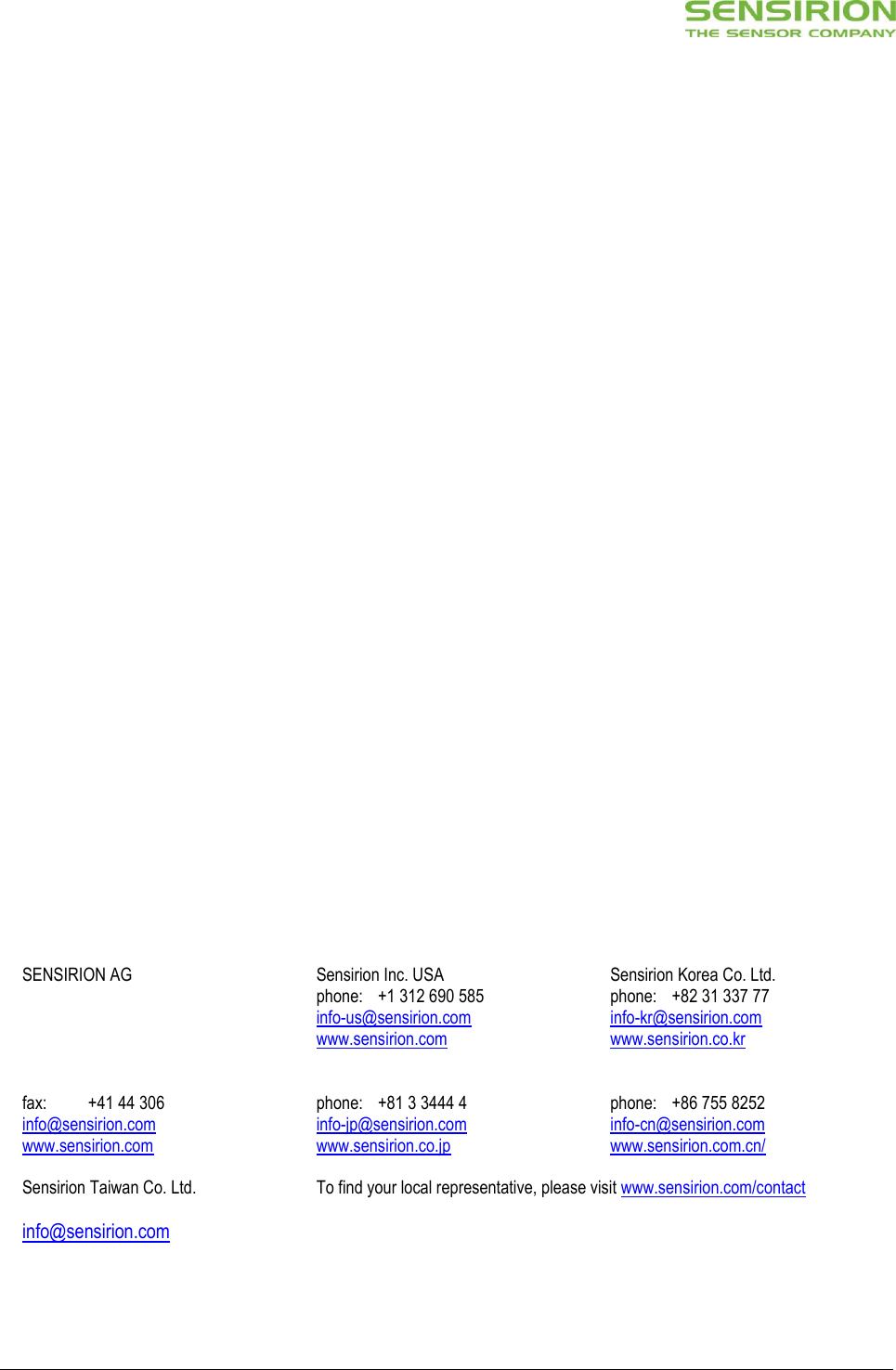 To find your local representative, please visit www.sensirion.com/contact