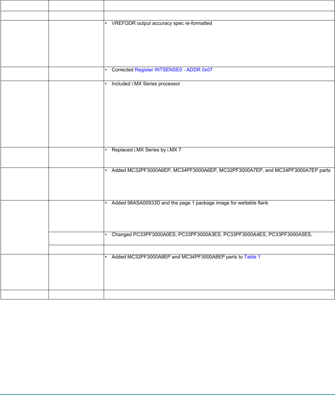 • Added MC32PF3000A8EP and MC34PF3000A8EP parts to Table 1