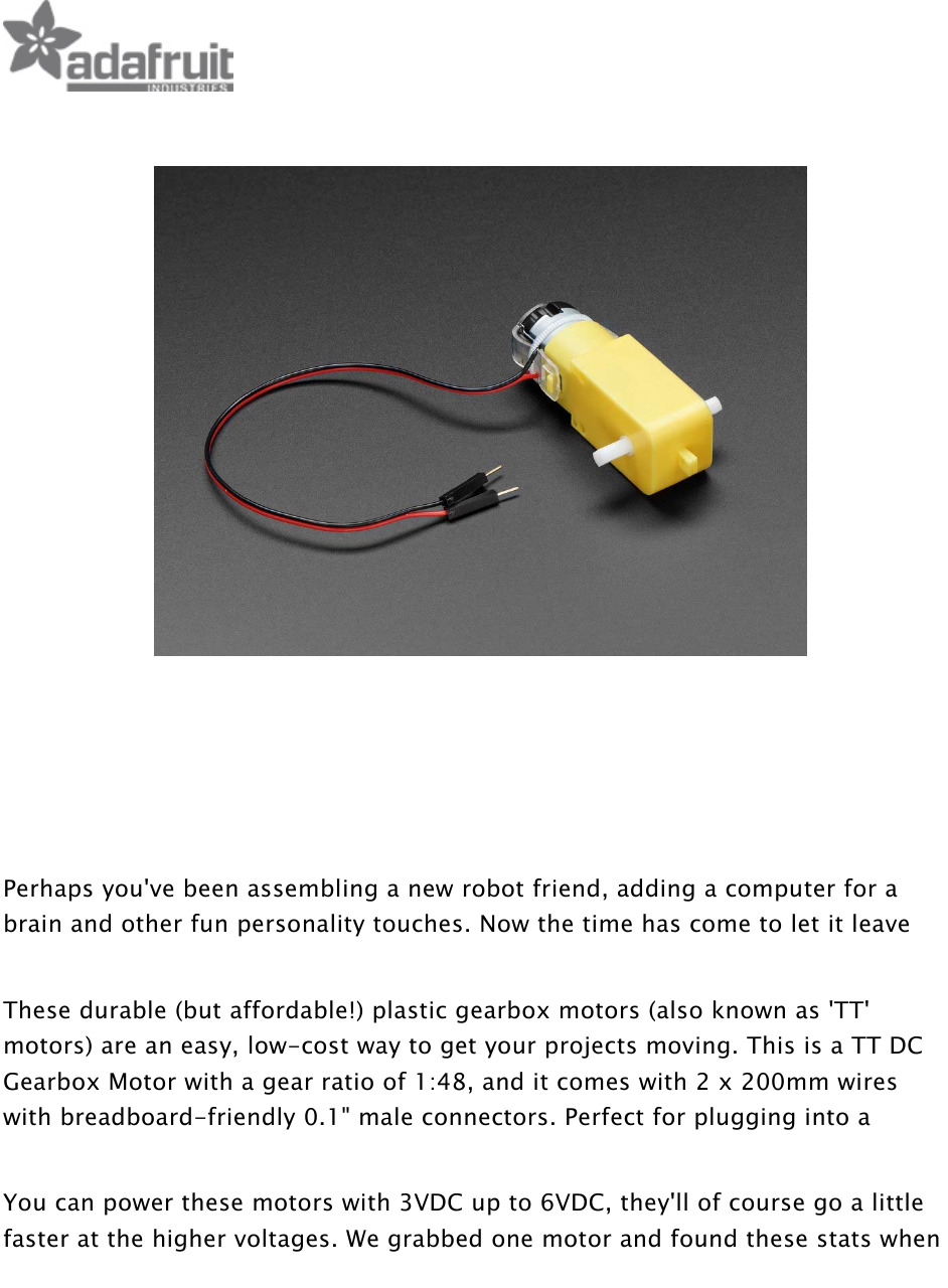 motors) are an easy, low-cost way to get your projects moving. This is a TT DC